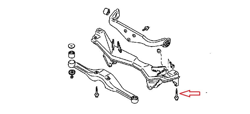 Commonly seized due to rust in the body shell — ideal for replacement during rear subframe or suspension service.